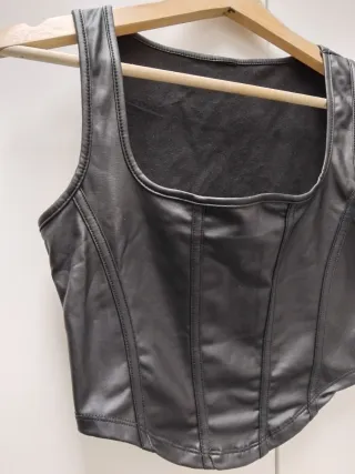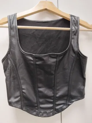 Camiseta con diseño estilo corsé, confeccionada en un material con efecto piel. - Diseño sin mangas. - Escote cuadrado. - Costuras detalladas en el frontal y los laterales.
