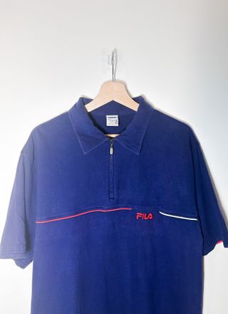 FILA Polo 1/4 Zip azul vintage 90 Y2K retro casual