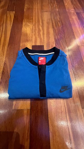 Camiseta tipo polo Nike original, color azul con detalles en negro en cuello y tapeta. Logo Nike en el pecho, talla L. Tejido cómodo y transpirable, ideal para un look casual o deportivo. 👉 Estado: usada, en buen estado ✔️ Talla L ✔️ Logo Nike en el pecho ✔️ Estilo polo, versátil y cómodo