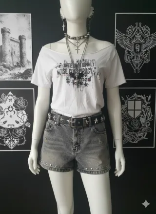 Camiseta de la banda The (International) Noise Conspiracy con un rollo increíble. El cuello es ancho (estilo barco) para que caiga de forma natural sobre el hombro, dándole un toque grunge y relajado. El diseño gráfico tiene ese efecto desgastado perfecto para looks alternativos, góticos o punk. ¡Ideal para combinar con tachuelas, cuero o denim desgastado! Nota: Se vende únicamente la camiseta. Accesorios y shorts no incluidos. #️⃣ Hashtags #TheInternationalNoiseConspiracy #PunkRock #GothicStyle #AltFashion #Grunge #Streetwear #RockBandTee #VintageVibe #IndieSleaze #ModaAlternativa #VintedFinds #CoquetteGoth #PunkAesthetic #BandMer