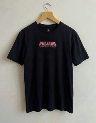 Camiseta Volcom “True to This” negra en excelente estado. Talla XL (TG). Medidas: hombros 53 cm, manga 24 cm, largo 75 cm. Confeccionada en 100% algodón, suave y cómoda para uso diario. Corte Regular Fit que se adapta bien a diferentes tipos de cuerpo. Diseño con logo en la parte frontal y gráfico llamativo en la espalda que le da un estilo auténtico y urbano. El tejido mantiene la forma y el color tras los lavados. Ideal para outfit casual o lifestyle activo.