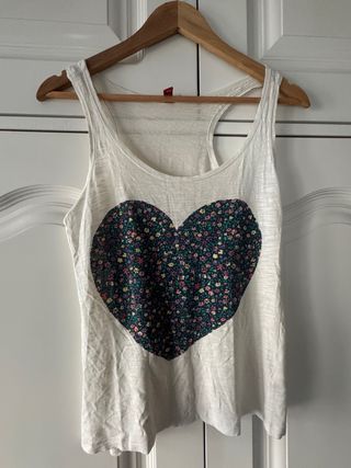 Camiseta sin mangas de H&M con un bonito estampado de corazón floral. - Diseño de corazón con flores. - Tirantes estilo nadador.