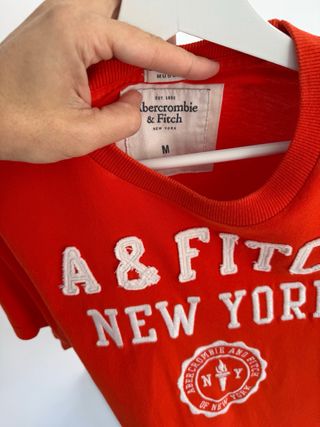 Camiseta de manga corta con el logo de Abercrombie & Fitch. Estilo MUSCLE. - Diseño frontal con texto A&FITCH NEW YORK. - Escudo circular con ABERCROMBIE AND FITCH y NEW YORK.