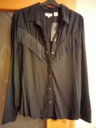 Camisa de estilo western con un diseño único. - Detalle de flecos en la parte delantera. - Cierre de botones. - Cuello camisero.