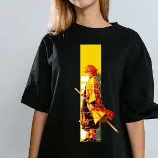 Camiseta negra con un llamativo estampado de estilo anime en la parte delantera. Es una prenda cómoda y con un diseño único. - Estampado de personaje anime. - Manga corta. - Cuello redondo.