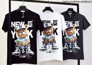 Conjunto de camisetas con estampado de oso New York y billetes. - Diseño llamativo con oso, gorra y cadenas. - Estampado New York en grande. - Estilo urbano y casual. NO NEGOCIABLE