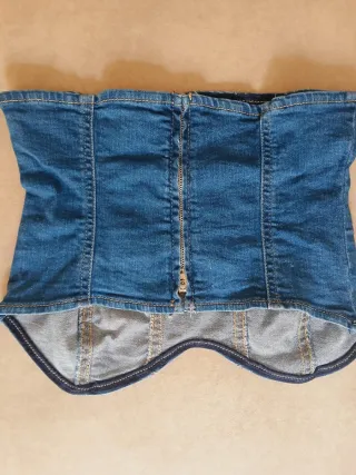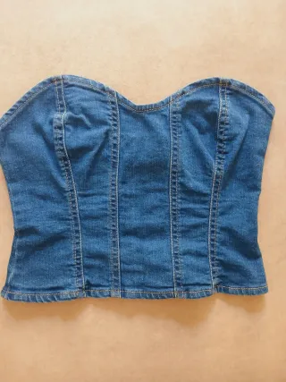 Top estilo corsé de Stradivarius en color azul denim. - Diseño sin tirantes. - Costuras marcadas. - Corte ajustado.