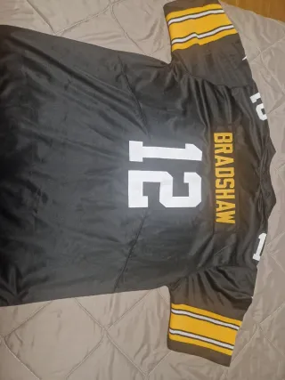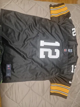 Camiseta de fútbol americano de los Pittsburgh Steelers. - Diseño con número 12 en blanco. - Mangas con detalles en amarillo y blanco. - Logo de la NFL y Nike.