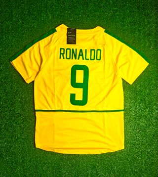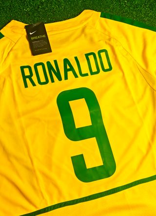 Camiseta Futbol Retro ⚽ Equipo: Brasil 🇧🇷 Año: 2002 🗓️ Jugador: Ronaldo Nazário 9️⃣ Versión: Local 🏠 Talla: L 🏷️ Envío Express 🚚💨