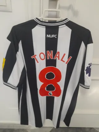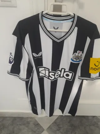 Camiseta de fútbol a rayas verticales negras y blancas. - Diseño con cuello en V. - Logo de Castore en el pecho. - Escudo del Newcastle United. - Parche de la Premier League en la manga. - Sponsor principal en el frontal.
