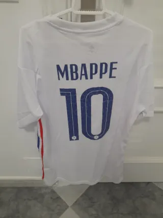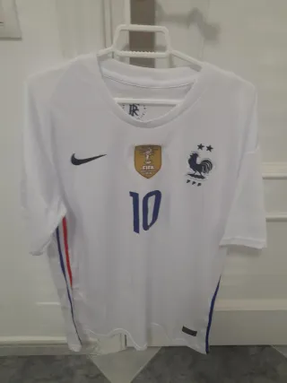 Camiseta de fútbol de Francia. - Diseño con el número 10 en azul. - Escudo de la FIFA y logo de Nike. - Detalles de las franjas tricolores en los laterales.