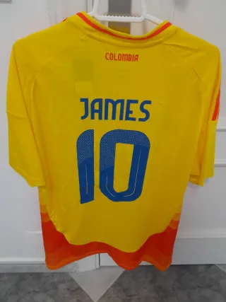 Camiseta de fútbol de Colombia, talla XL. Diseño deportivo con detalles icónicos. - Logo de Adidas. - Escudo de la Federación Colombiana de Fútbol. - Número 10 en azul.