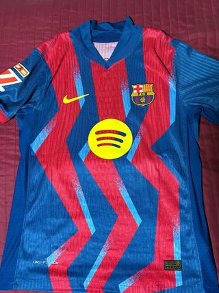 Conjunto de fútbol del FC Barcelona para niño, nuevo sin estrenar. Incluye camiseta, pantalón corto y calcetines. - Talla para niño de 2 años. - Perfecto estado. - Ideal para pequeños aficionados culés.