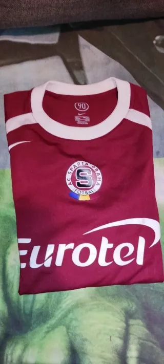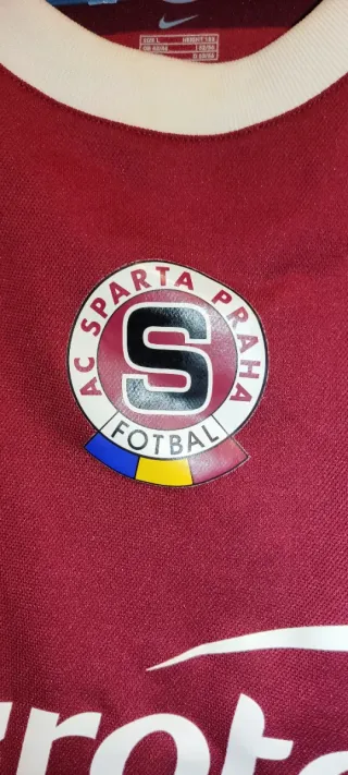 Camiseta oficial de fútbol del Sparta Praga con patrocinio de Eurotel. Diseño clásico en color burdeos. - Escudo del club AC Sparta Praha Football. - Cuello redondo con ribete blanco. Talla L. 52 54. Logo nike 90 en el cuello. Retro vintage. Años 2000. Medidas en fotos. Más fotos en otro anuncio de mi perfil. - Diseño con cuello redondo y mangas largas. - Logo de Nike en el pecho. - Escudo del club en la parte frontal. - Patrocinador principal visible. Más artículos escribiendo algeral en búsqueda general. Se hacen lotes en conjunto con los otros perfiles No se aceptan devoluciones.