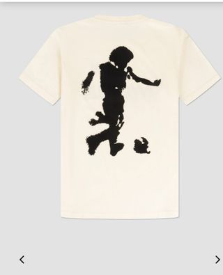 Camiseta de la marca MEYBA con un diseño gráfico de Maradona. - Color beige. - Estampado de Maradona jugando al fútbol.