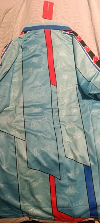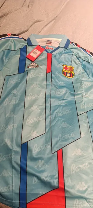 ESCUCHI OFERTAS NUEVA A ESTRENAR Camiseta de fútbol del FC Barcelona. - Diseño con detalles en azul y rojo. - Logo de Kappa en la manga. - Escudo del FC Barcelona en el pecho. Barça Fcb Retro