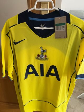 Camiseta de fútbol del Tottenham Hotspur. - Diseño en color amarillo con detalles en azul marino. - Escudo del club en la parte frontal.