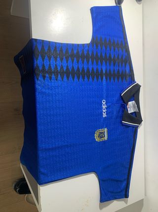 Camiseta de fútbol retro de Argentina, marca Adidas. Un diseño clásico con detalles icónicos. - Diseño con patrón de rombos en la parte superior. - Escudo de la AFA bordado. - Logo de Adidas en el pecho.