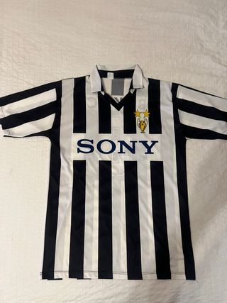 Camiseta de fútbol vintage del Juventus con el patrocinio de Sony,temporada (1996/1997) - Diseño clásico de rayas blancas y negras. - Escudo del club con estrellas. - Cuello tipo polo. -Talla M/L -Perfecta,como nueva -PRECIO NEGOCIABLE!!