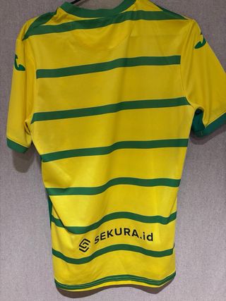 Camiseta de fútbol del Norwich City, diseño amarillo y verde a rayas, muy cómoda y llamativa. 🔹 Talla: S 🔹 Estado: buen estado 🔹 Colores: amarillo y verde 🔹 No es original Ideal para entrenar, jugar al fútbol o para fans del Norwich City que buscan una camiseta diferente a buen precio. Se vende porque ya no se utiliza. 📦 Entrega en mano o envío por Wallapop. ❓ Cualquier duda, contesto sin problema.