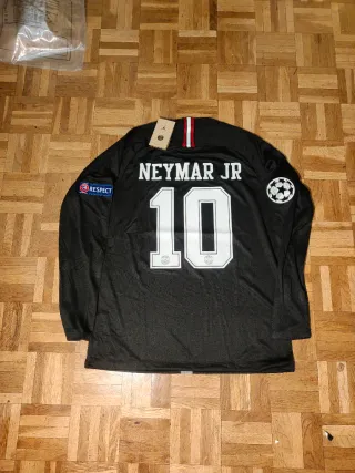 Camiseta de fútbol del Paris Saint-Germain (PSG) de la temporada 2019, con el dorsal 10 de Neymar Jr. - Diseño oficial del equipo. - Logo de Respect en la manga. - Escudo de la Champions League en la otra manga.