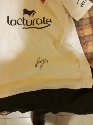 Camiseta de fútbol del Osasuna firmada por el equipo de 2008/2009 - Color rojo vibrante. - Diseño deportivo de Diadora. Por detrás tiene nombre y número y la publicidad algo desgastada. Por lo demás está bien. Precio negociable.