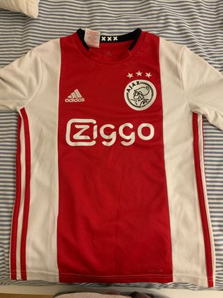 Camiseta de fútbol del Ajax de Ámsterdam. - Diseño con los colores rojo y blanco. - Logo de Adidas en el pecho. - Escudo del club en la parte frontal.