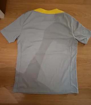 Camiseta de fútbol del Real Madrid de la temporada 06-07. - Diseño con detalles en azul y blanco. - Logo de Adidas bordado. - Escudo del Real Madrid. - En la etiqueta oficial pone que es talla S, pero se asemeja más a una M (Ver medidas en fotos) - Es de portero, una versión muy complicada de encontrar.