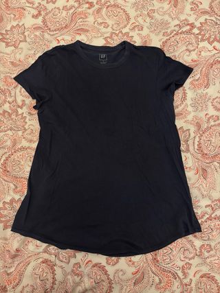 Camiseta de manga corta lisa azul marino. Es de la marca Gap. Es la talla M, corresponde, es muy cómoda.