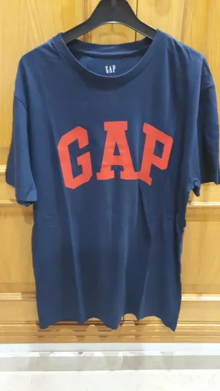 Camiseta de manga corta con el logo de GAP color azul marino y letras rojas -poco uso muy bien segunda vida -composicion algodon - Cuello redondo. - Tejido suave y cómodo.