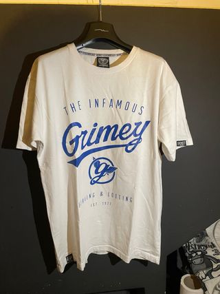 Camiseta de manga corta con estampado. - Diseño The Infamous Grimey. - Logo de Grimey en el pecho. - Estampado Burning & Looting Est. 1977 en la parte inferior.