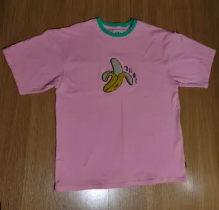Camiseta de manga corta con un divertido diseño de plátano bordado en el pecho. - Cuello redondo con ribete verde. - Estampado de plátano con las letras GRMY bordado. - Tejido suave y cómodo. En perfecto estado, sólo un par de usos.