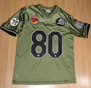 Camiseta de estilo deportivo de la marca Grimey con el número 80 estampado. - Diseño con parches gráficos en mangas y pecho. - Número 80 en negro con borde blanco. - Tejido de malla transpirable. En perfecto estado, sólo un par de usos.