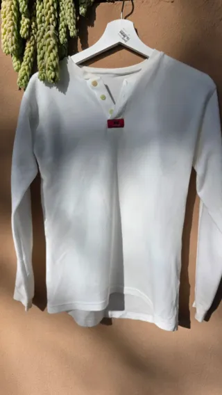 Camiseta de manga larga marca Helly Hansen en color verde caqui. Presenta un diseño con rayas oscuras en los hombros y las mangas. - Tejido texturizado. - Cuello redondo. - Puños y bajo de manga elásticos. Es una XS de hombre pero la compré para mi que uso talla M Sólo usada una vez Tiene una marca de plancha casi imperceptible (ver primera foto) y un rascón, pero no está rota.