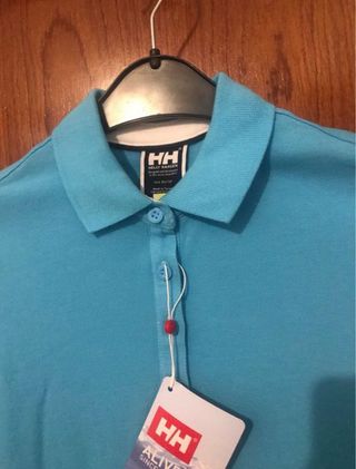 Polo de manga corta de la marca Helly Hansen. El color es azul celeste muy bonito. No le hace justicia las fotos - Cuello tipo polo con botones. - Logo de la marca en la manga. - Etiqueta original. - Disponibles una unidad en talla S y otra en talla L