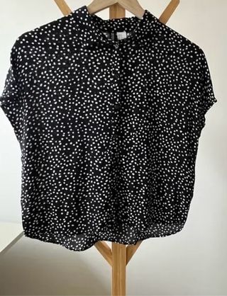 Preciosa blusa de verano de la marca HM. Es de color verde claro y talla XL. - Es de algodón. - Tiene un diseño de lunares. - Es de corte amplio y fluido. Muy buen estado. Prácticamente sin uso
