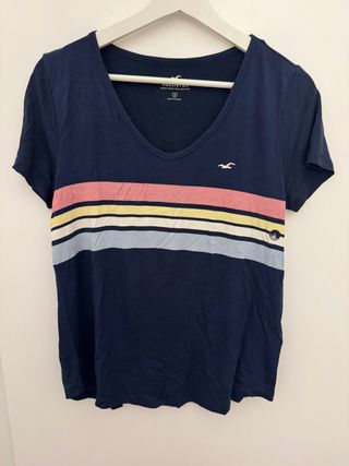 Samarreta de màniga curta amb el logotip de Hollister i text original. En bon estat, sense forats ni taques visibles. Còmoda i ideal per a ús diari