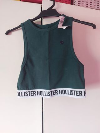 Top hollister color verde cortito a estrenar con la etiqueta puesta. Talla S queda muy bonito puesto. Como se ve en la foto me costó 22 euros.
