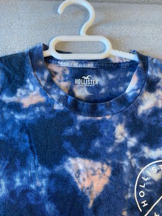 Camiseta de chico con un diseño tie-dye moderno y llamativo. - Estampado tie-dye en tonos azules y blancos. - Logo de Hollister en el pecho.