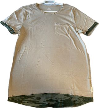 Camiseta de manga corta con un diseño moderno y detalles militares. Perfecta para un look casual. - Cuello redondo. - Bolsillo en el pecho. - Mangas y bajo con estampado de camuflaje.