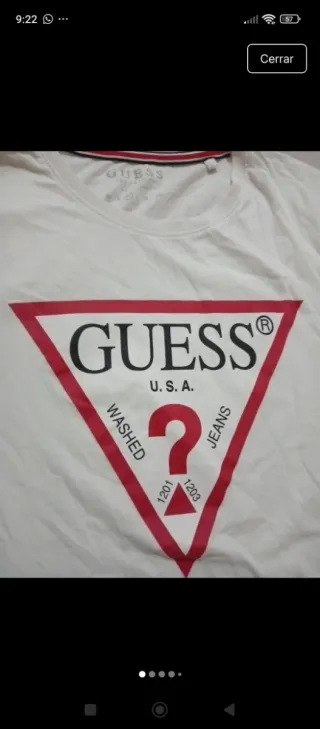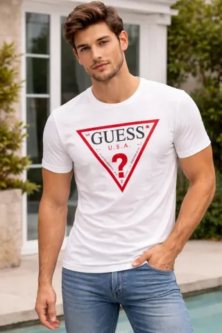 Camiseta de manga corta con el icónico logo de Guess. - Diseño frontal con el logo Guess USA en triángulo rojo. - Cuello redondo. - Tejido suave y cómodo.