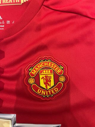 Camiseta de fútbol del Manchester United. - Diseño clásico en color rojo. - Logo de Adidas y escudo del club. - Patrocinador Chevrolet en la parte frontal. - Detalles de Newton Heath en el cuello. -Si necesitais mas informacion o teneis alguna duda escribirme sin problema.🫡