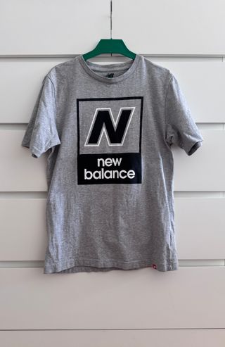 Camiseta de manga corta con logo New Balance estampado en el pecho. Tiene una pequeña mancha en la parte de abajo, como se ve en la última foto. Hago descuentos en lotes de articulos y acepto ofertas razonables. Cualquier duda, no dudes en preguntarme.