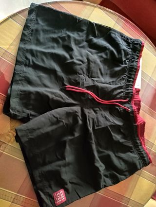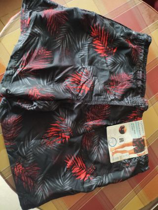 Lote de ropa de hombre talla XL que incluye bañadores y camisetas. - Bañadores con estampado de hojas tropicales en negro y rojo. Y demas diseños. En otros colores. En total son 4 bañadores. Completamente nuevos con su etiqueta. - Camisetas básicas para el día a día. Todas las camisetas van de regalo. Una negra es de marca lacoste. Las demás que se ven en la fotografías. No pude subir fotos de todas. Son siete camisetas y un polo