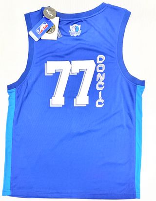 Camiseta de baloncesto del equipo Dallas Mavericks, con el nombre de Luka Doncic. - Diseño con el logo del equipo en el pecho. - Detalles laterales en azul claro. - Etiqueta oficial NBA.