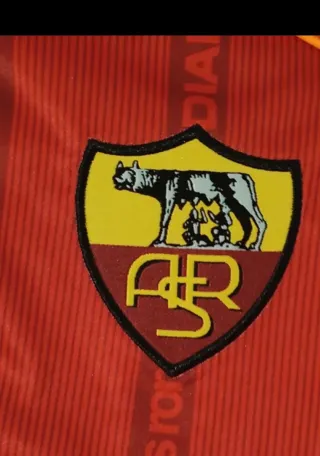 Camiseta de fútbol del AS Roma. - Diseño con cuello naranja. - Logo de Diadora en el pecho. - Escudo del equipo. - Patrón de líneas verticales.