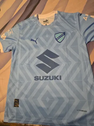Camiseta de fútbol del Bolívar, con un diseño moderno y detalles distintivos. Liga Boliviana. Estampado totalmente SUBLIMADO, escudo (parche) y logotipo PUMA costurados - Sublimado - Escudo del club en el pecho. - Logo de Puma bordado. - Patrocinador principal visible en el frente. - Talla L