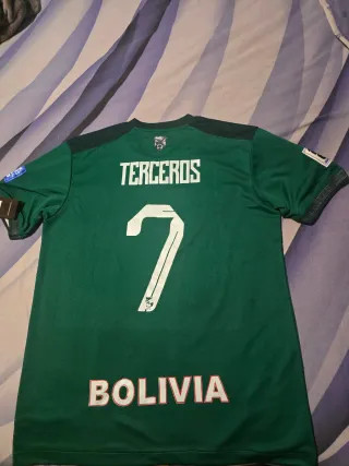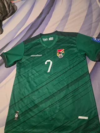 Camiseta de fútbol selección Boliviana con el número 7 de Miguel Terceros. Escudo termosellado y nombre y número serigrafiado Clasificación Mundial 2026 - Edición Jugador - Diseño con líneas diagonales. - Escudo de la selección boliviana. - Logo de Marathon en el pecho. - Talla L