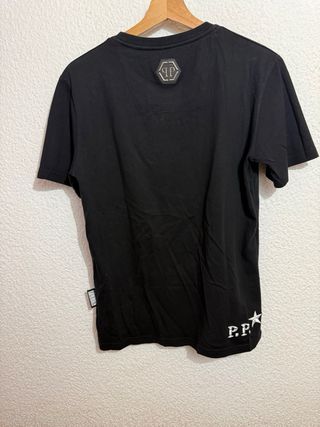 Camiseta de manga corta con diseño frontal. - Estampado de P.P. y estrella. - Detalle de etiqueta en la parte inferior. - Es una L pero entallada