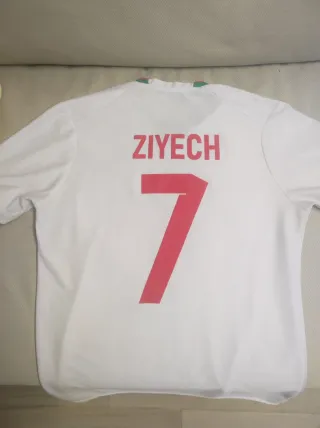 Camiseta de la selección de Marruecos. - Diseño con escudo y logo de Puma. - Detalles geométricos en la parte frontal. - Cuello y mangas con ribete verde y rojo. - Ziyech